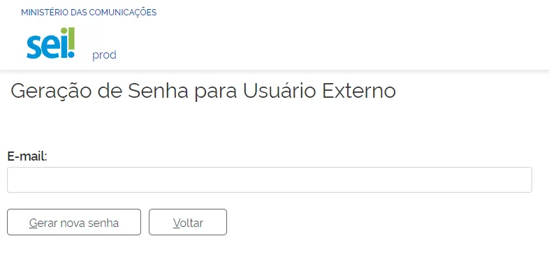 - Faça login no Acesso Externo do SEI-MCom: https://sei.mcom.gov.br/externo