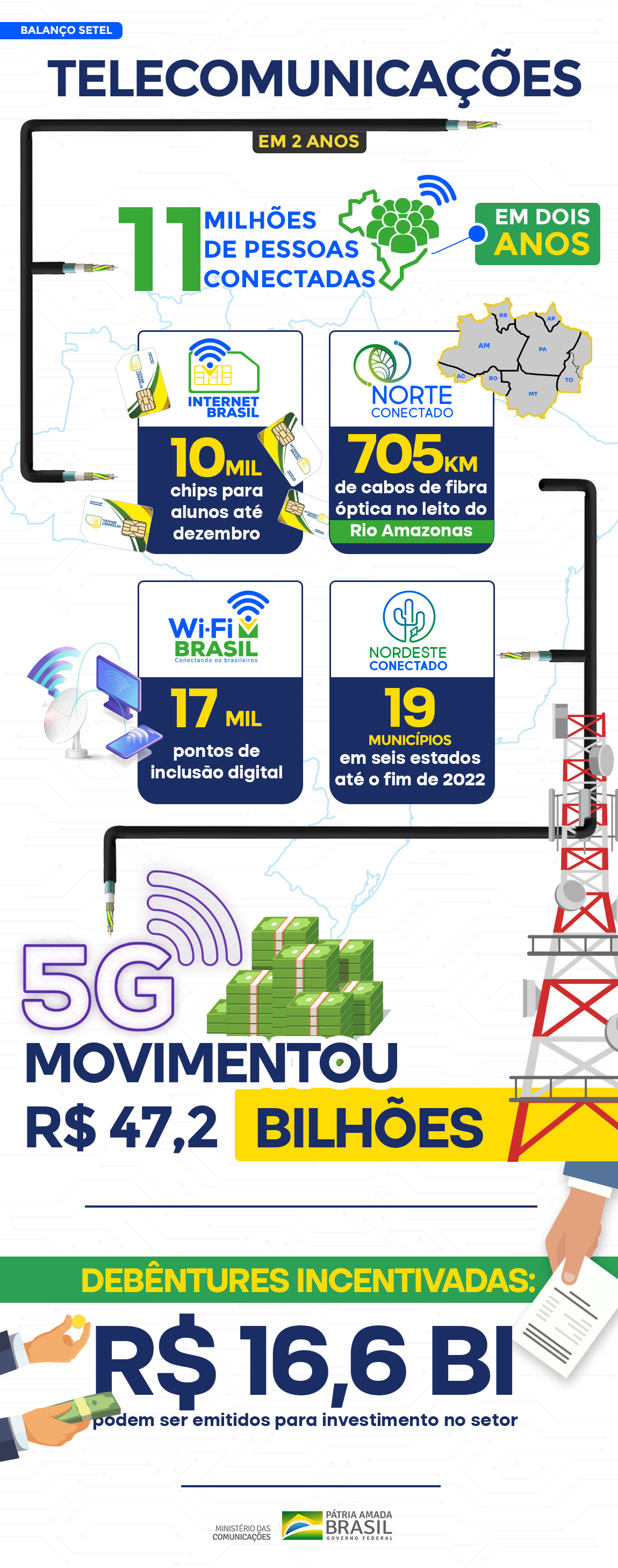 Em pouco mais de dois anos da recriação do Ministério das Comunicações (MCom), o Governo Federal comemora os avanços conquistados na área de telecomunicações, que possibilitaram a inclusão digital de mais de 11 milhões de pessoas em todo o país. Mesmo com a pandemia do coronavírus, o setor é um dos que mais avançou e ajuda o Brasil a entrar em um novo momento nas áreas de economia e de desenvolvimento social.