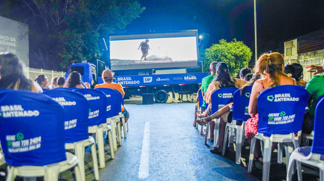 A iniciativa transforma praças e espaços públicos em grandes salas de cinema a céu aberto, combinando lazer e informação / FOTO: Divulgação/EAF