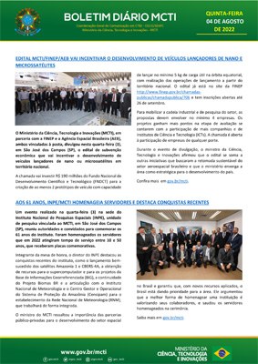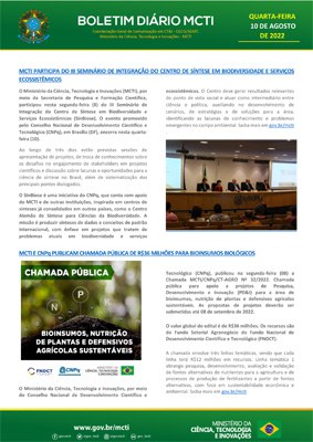 Agosto 2022 - Boletins Diários MCTI