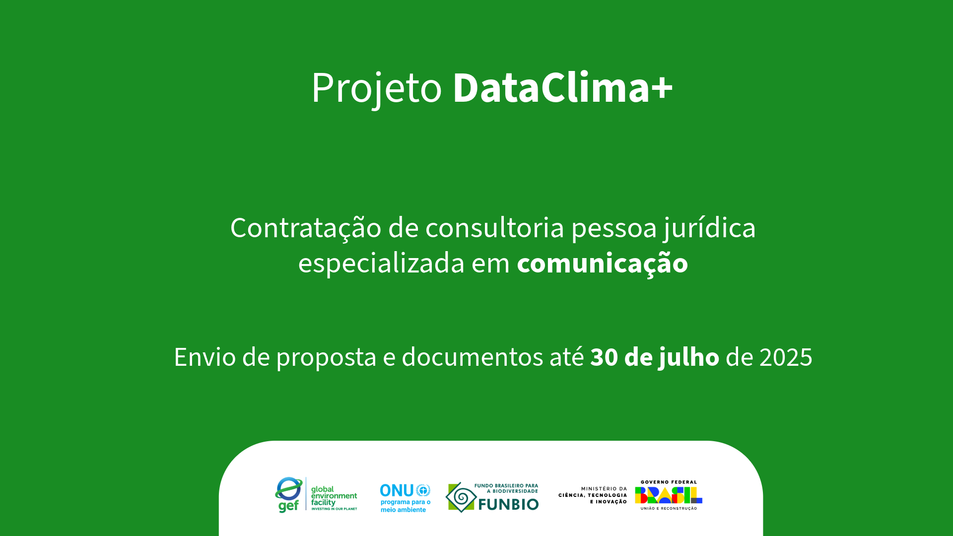 O Ministério da Ciência, Tecnologia e Inovação (MCTI), por meio da Coordenação-Geral de Ciência do Clima, informa que o projeto DataClima+ está selecionando consultoria de pessoa jurídica especializada em comunicação para elaborar e executar plano de ação de gênero e estratégia de comunicação e engajamento.