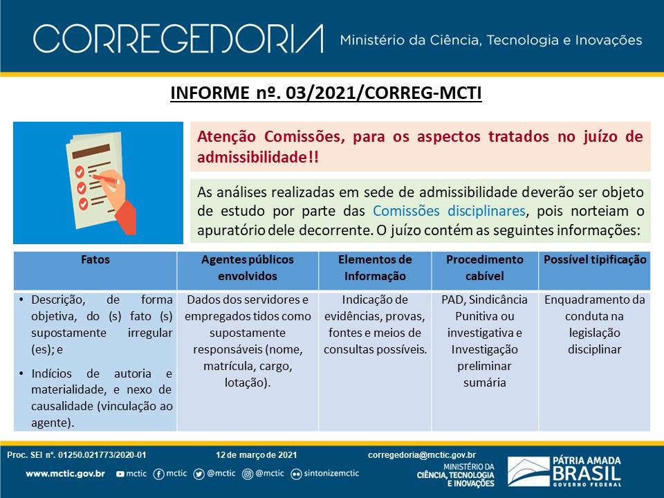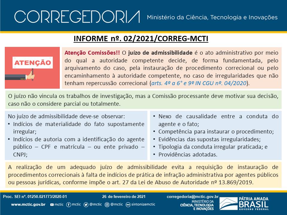 Informe nº 01/2022/CORREG-MCTI Informe nº 20/2021/CORREG: