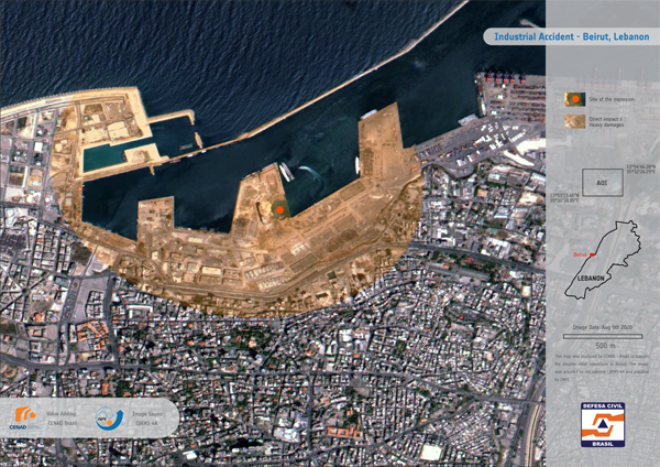 Dentro do esquema de cooperação internacional do International Charter Space and Major Disasters e em suporte à missão Brasileira para atender o desastre da explosão em Beirute, Líbano, o Instituto Nacional de Pesquisas Espaciais, unidade de pesquisa vinculada ao MCTI, programou aquisição emergencial de imagens do satélite CBERS 04A.