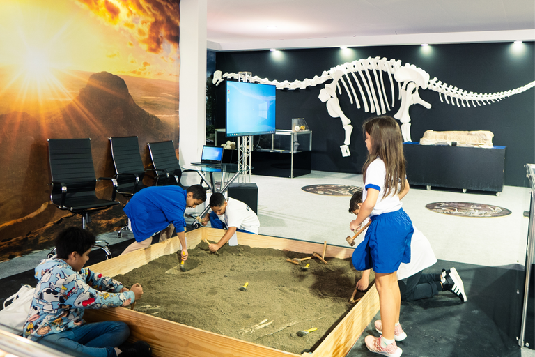 Além da brincadeira da escavação, o espaço Geoparque conta com uma exposição de registros de ancestrais da biodiversidade moderna como um todo: crocodilos primitivos, ancestrais dos mamíferos, serpentes com patas, dinossauros emplumados e uma atração à parte: o “Fóssil Ubirajara jubatus”, que voltou para casa após 30 anos fora, depois de longas negociações com o governo Alemão, e agora, cerca de um ano depois, está exposto na 21ª Semana Nacional de Ciência e Tecnologia.