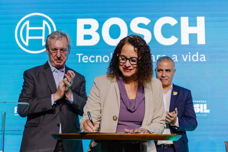 O anuncio foi feito durante visita às instalações da Bosch, realizada pelo vice-presidente e ministro do Desenvolvimento, Indústria e Comércio (MDIC), Geraldo Alckmin, pela ministra da Ciência, Tecnologia e Inovação (MCTI), Luciana Santos, pelo presidente da Financiadora de Estudos e Projetos (Finep), Celso Pansera, pelo diretor do BNDES José Luis Gordon e outras autoridades.