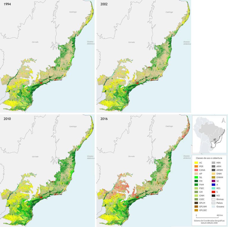 MCTI produz novos mapas de uso e cobertura da terra para o bioma Mata Atlântica