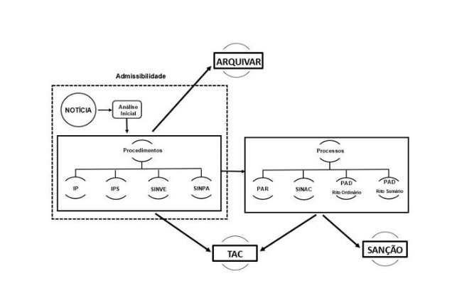 Legenda: IP - Investigação Preliminar de Ente Privado; IPS - Investigação Preliminar Sumária; SINVE - Sindicância Investigativa; SINPA - Sindicância Patrimonial; PAR - Processo Administrativo de Responsabilização de Ente Privado; SINAC - Sindicância Acusatória; PAD - Processo Administrativo Disciplinar; PAD - Processo Administrativo Disciplinar - Rito Sumário.