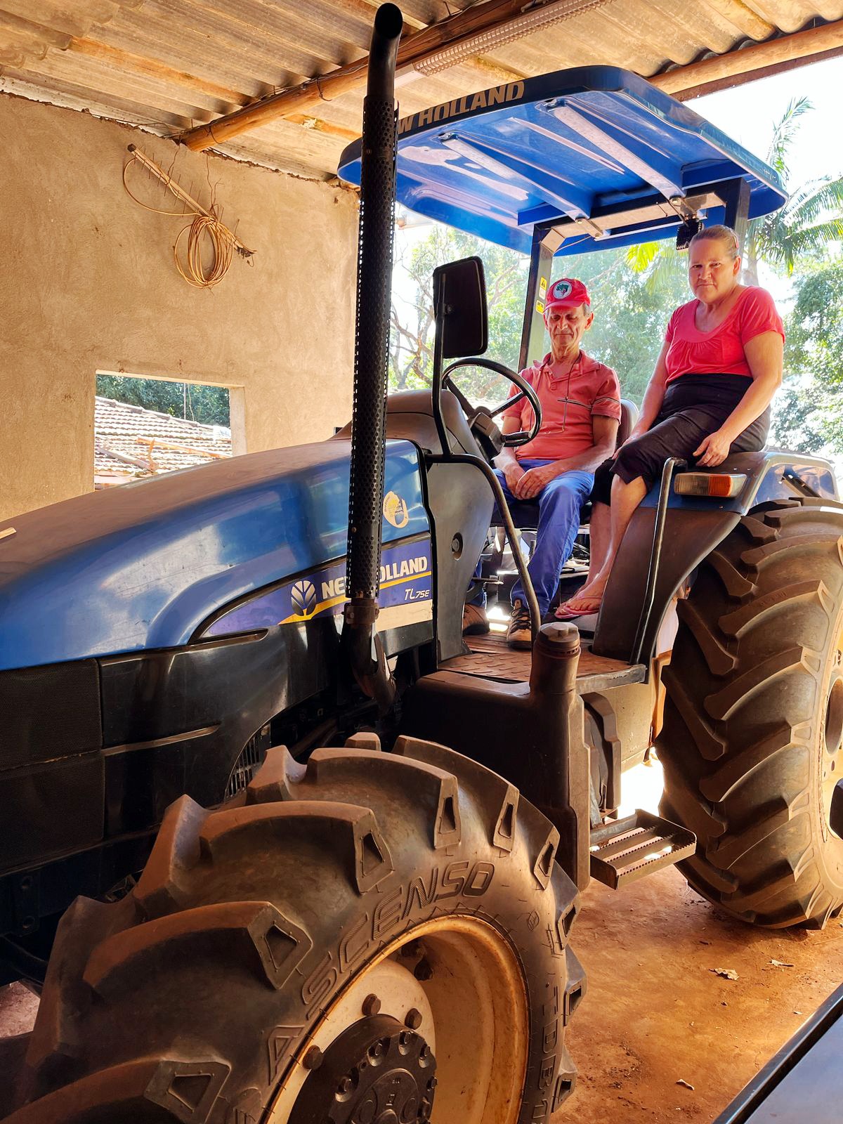 Produção em alta - Casados há 44 anos e moradores do Assentamento Pirituba II, em Itapeva/SP, Luiz Carlos Bueno de Morais e Maria Aparecida de Godoy Morais fazem uso do Mais Alimentos há cerca de dois anos. São produtores de milho, soja, trigo e hortifruti em geral. Com o recurso de R$ 270 mil o casal investiu na compra de um trator, uma carreta e um pulverizador, com o intuito de impulsionar a produção de alimentos. "O Programa facilitou demais a vida aqui, porque comprar no boleto não é bom. Agora dá para planejar e calcariar a minha terra", disse Carlos. Ele revela ainda que, antes da aquisição de seu maquinário, precisava terceirizar o serviço e pagar por hora pelo preparo da terra. Carlos e Maria agora pretendem acessar outro recurso para construir um barracão para guardar os implementos.