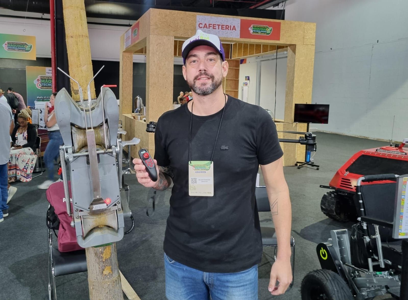“Somos de Belém (PA) e trouxemos essa solução que é a colheita automatizada e humanizada do açaí. Como a colheita também é feita com crianças, a gente consegue solucionar algumas questões sociais como a diminuição do trabalho infantil e a evasão escolar, principalmente. Com a máquina, o peconheiro vai ter uma ferramenta na mão que vai beneficiar o trabalho dele e fazer com que ele não tenha mais esse risco de acidente, aumentando sua produtividade”, comenta Nelson Franzoni, gerente comercial da Kaatech, que produz o robô Açaí Bot.