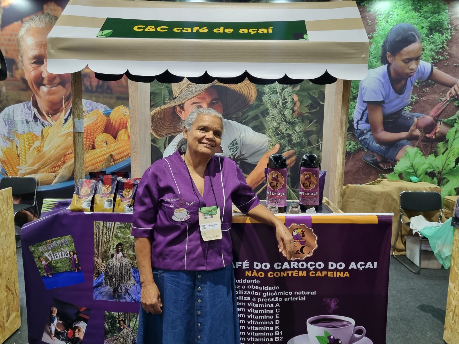 - Linéia Loyola Martins, de Viana (ES), expondo o Café de Açaí, produto saudável oriundo da agricultura familiar. Foto: Beatriz Mendes