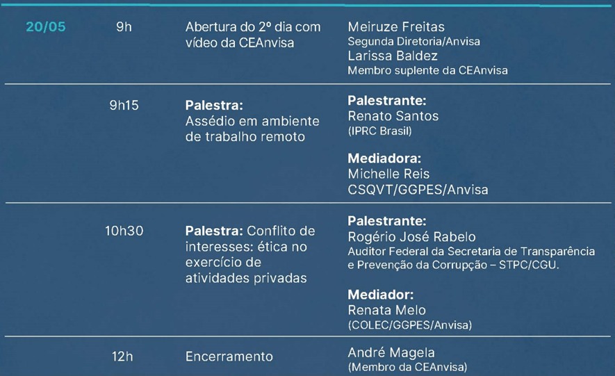 A Comissão de Ética da Agência Nacional de Vigilância Sanitária (CEAnvisa) promoverá, nos dias 19 e 20 de maio, um seminário em comemoração aos seus 20 anos, com transmissão ao vivo pelo Teams.