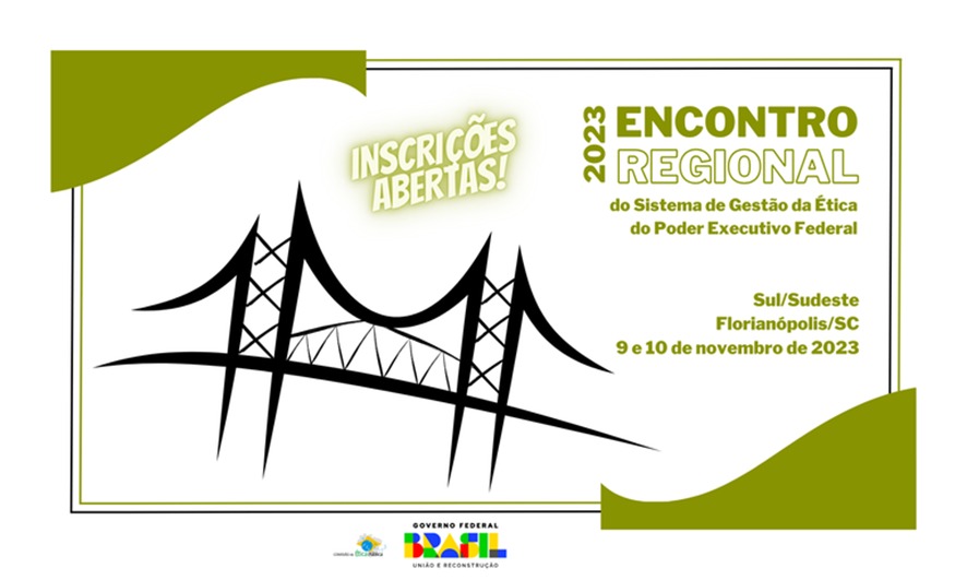 Estão abertas as inscrições para a segunda etapa dos Encontros Regionais do Sistema de Gestão da Ética do Poder Executivo Federal de 2023 - Edição Sul/Sudeste, que acontecerá em Florianópolis. Para participar, basta preencher o formulário disponível aqui. O evento acontecerá nos dias 9 e 10 de novembro, na Superintendência da Polícia Federal em Santa Catarina, situada na Rua Paschoal Apóstolo Pítsica, 4744 - Agronômica, Florianópolis/SC.