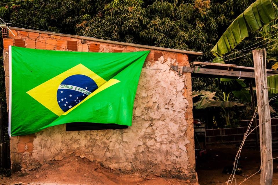 Descrição: "Em uma caminhada pela cidade Sol Nascente, captei esse cenário, a bandeira do Brasil em uma casa visualmente simples. Registro de 2018."