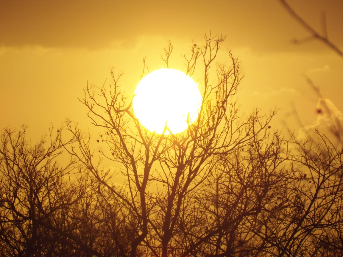 Descrição: "O momento em que as árvores secas do sertão capturam o sol ao entardecer."