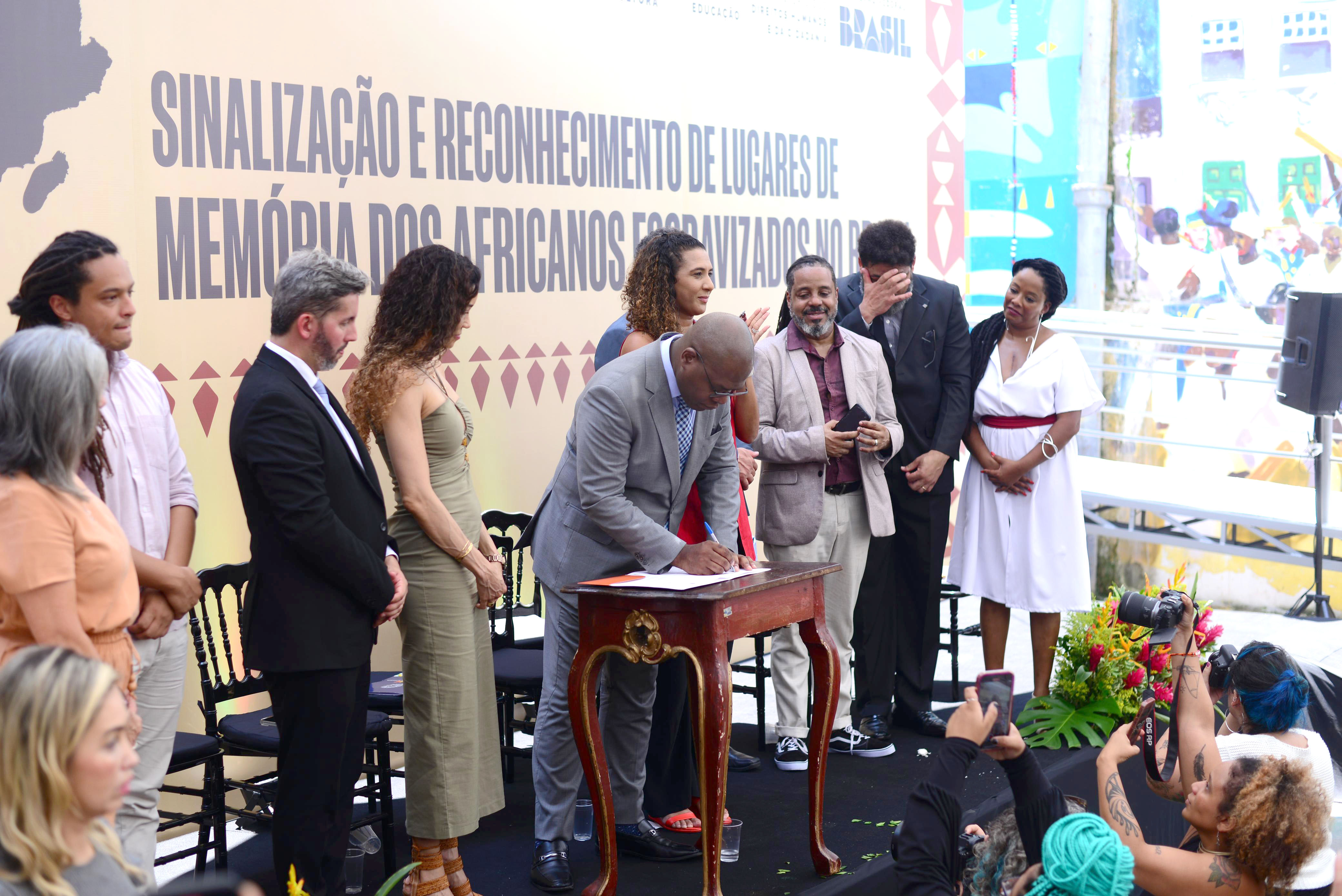 Desenvolvido pelo Ministério dos Direitos Humanos e da Cidadania (MDHC) em parceria com a Organização das Nações Unidas para a Educação, a Ciência e a Cultura (Unesco) e os ministérios da Igualdade Racial (MIR), da Cultura (MinC) e da Educação (MEC), o projeto de afixação de placas nos locais de memória dos africanos escravizados no Brasil tem como objetivo dar visibilidade à história da matriz africana no país.