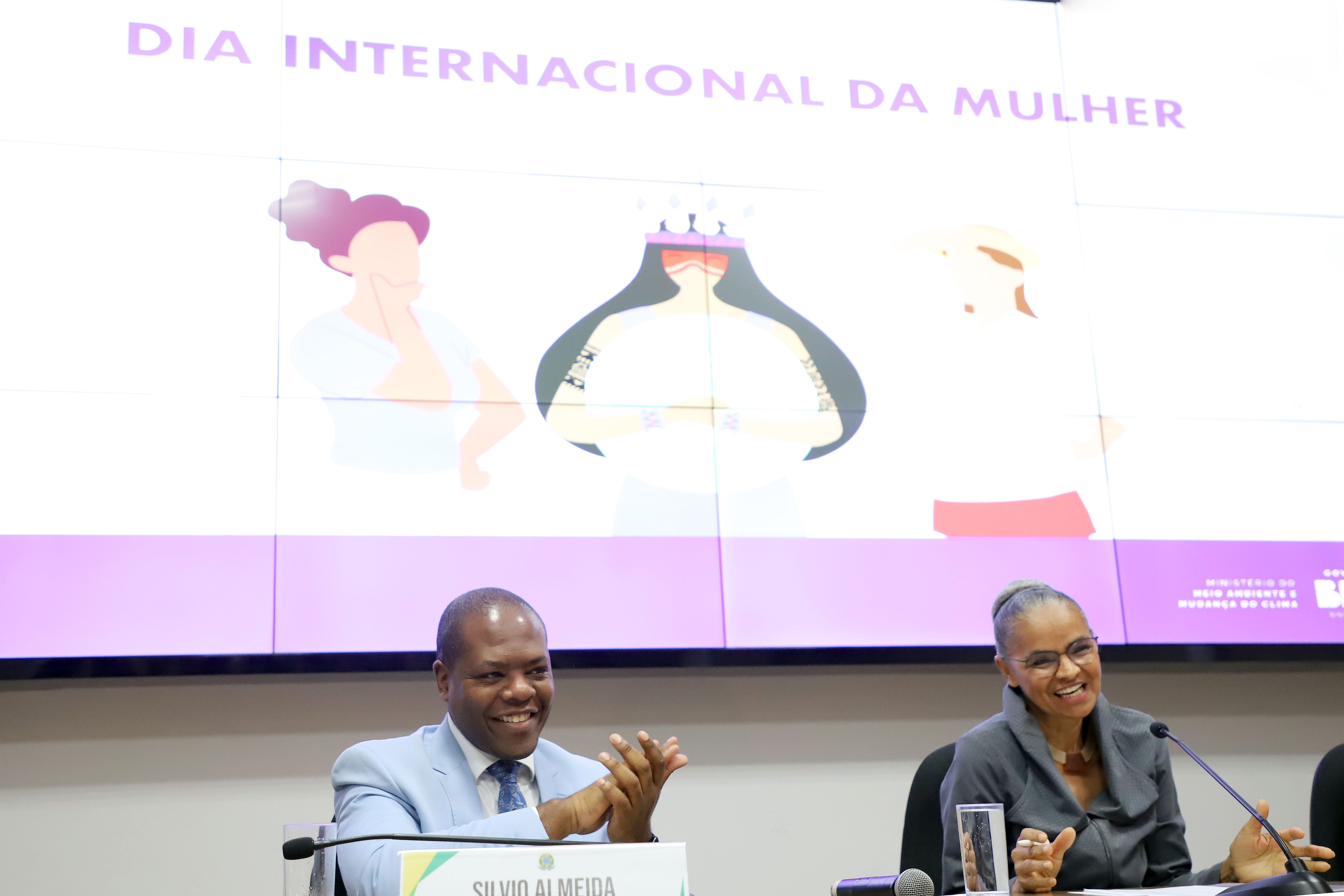 A convite da ministra Marina Silva, o ministro dos Direitos Humanos e da Cidadania, Silvio Almeida, participou nesta sexta-feira (8) da cerimônia de celebração do Dia Internacional da Mulher realizada pelo Ministério do Meio Ambiente e Mudança do Clima (MMA).