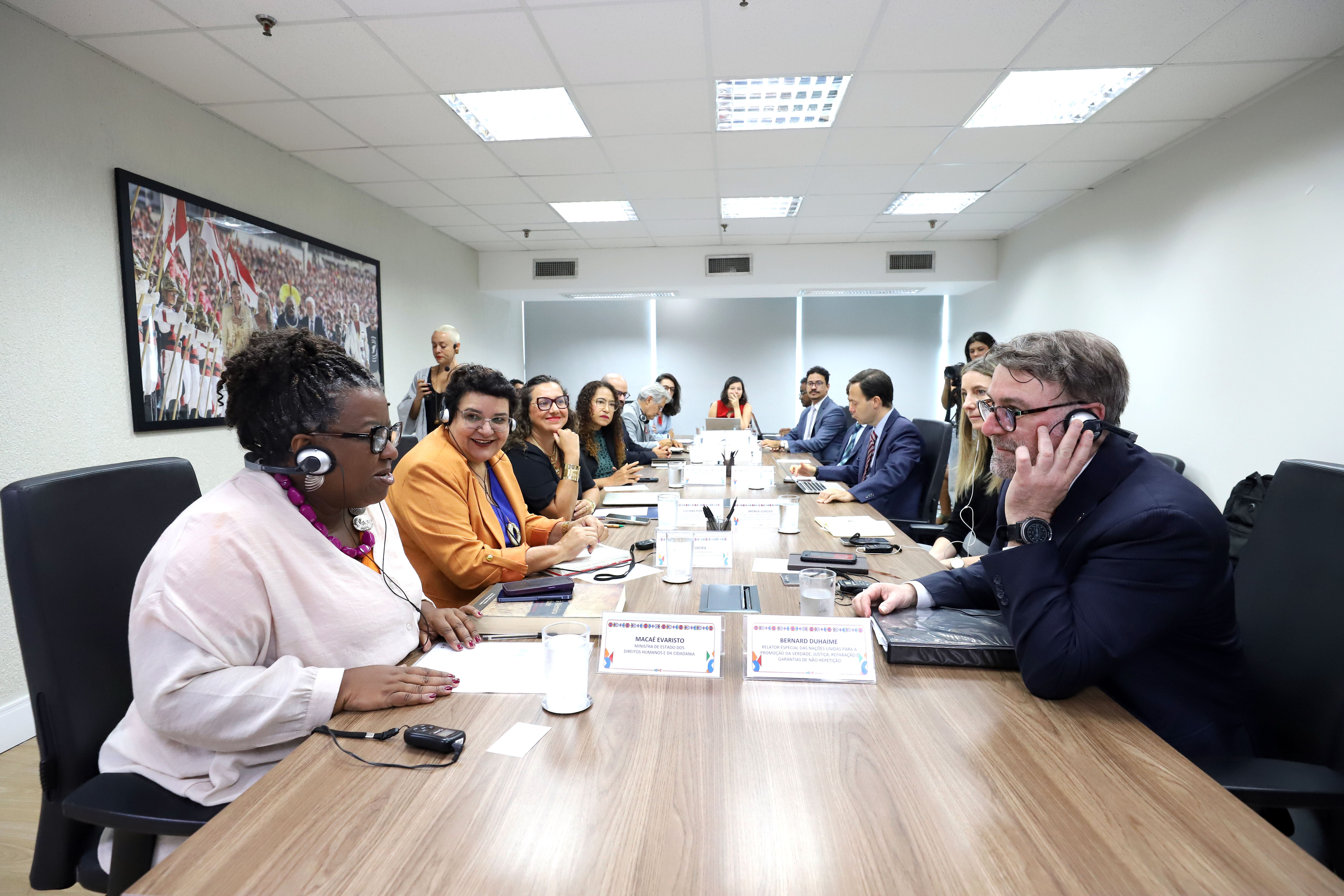 Mais cedo, a ministra dos Direitos Humanos e da Cidadania recebeu, em seu gabinete, a visita do Relator Especial das Nações Unidas para a Promoção da Verdade, Justiça, Reparação e Garantias de Não-Repetição, Bernard Duhaime. Durante o encontro, foram apresentados vídeos institucionais sobre as ações do MDHC na preservação da memória e reparação às vítimas da ditadura e da escravidão, além do pedido de desculpas do Estado brasileiro pela negligência na guarda dos remanescentes da Vala Clandestina de Perus, em São Paulo.A ministra destacou a importância do encontro no contexto de fortalecimento da democracia brasileira. “Esta visita acontece num momento muito importante, que é de fortalecimento da agenda da democracia, um pilar fundamental para nós no Brasil”, afirmou.