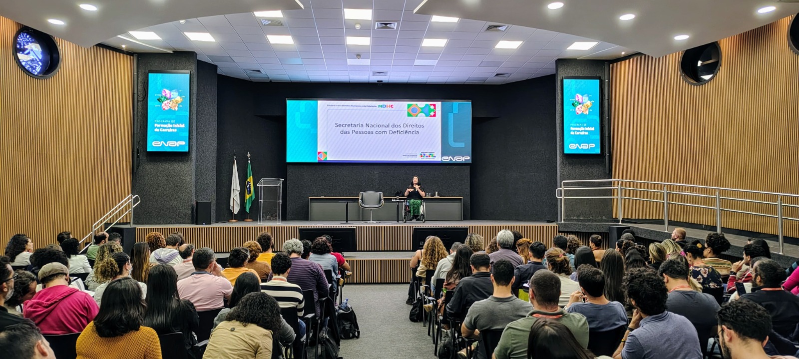 O Ministério dos Direitos Humanos e da Cidadania (MDHC), por meio da Secretaria Nacional dos Direitos da Pessoa com Deficiência (SNDPD), participou, nesta terça-feira (8), das atividades de formação das novas turmas da carreira de Analista Técnico de Políticas Sociais (ATPS), no turno da manhã e da tarde, realizadas na Escola Nacional de Administração Pública (Enap), em Brasília (DF).