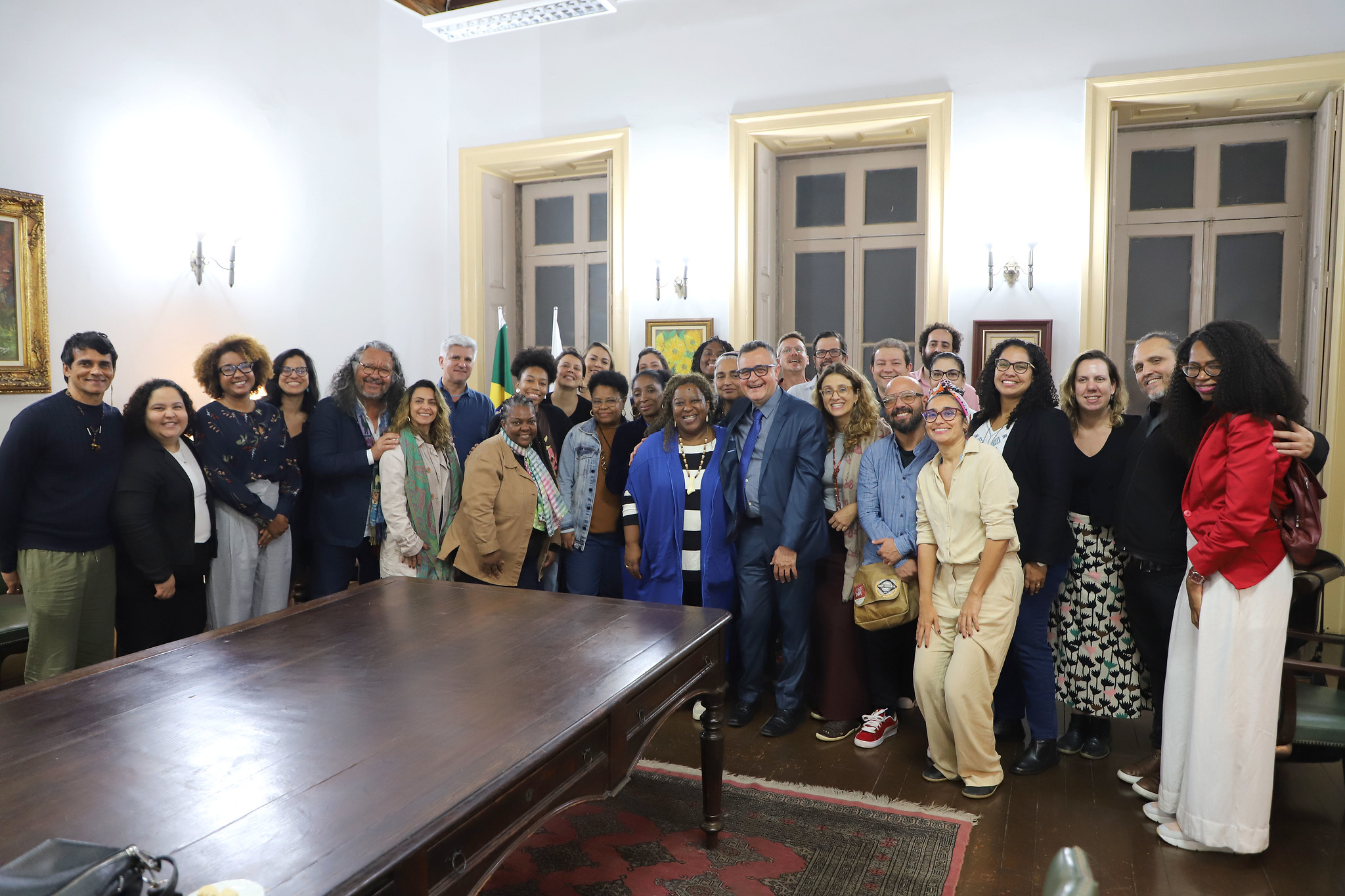 A titular do MDHC também esteve reunida com representantes da Rede Nacional de Religiões Afro-Brasileiras e Saúde (Renafro), na sede do Instituto do Patrimônio Histórico e Artístico Nacional (IPHAN). Na ocasião, o assunto foi o lançamento da pesquisa “Respeite o meu Terreiro” e outras pautas correlatas, junto à Defensoria Pública da União (DPU).Trata-se de um questionário digital destinado aos dirigentes dos terreiros brasileiros, com o objetivo de identificar agressões racistas aos espaços e povos dos terreiros afrobrasileiros. A iniciativa faz parte do Projeto “Respeite meu terreiro: Racismo religioso contra os povos tradicionais de religiões de matriz africana no Brasil”, realizado pela Coordenação de Liberdade Religiosa (CGLIB), do MDHC, em parceria com a Renafro, o Terreiro Ilê Omolu Oxum e o Laboratório de Museologia Experimental (LAMEX)/Grupo de pesquisa Museologia Experimental e Imagem (MEI), da UniRio.
