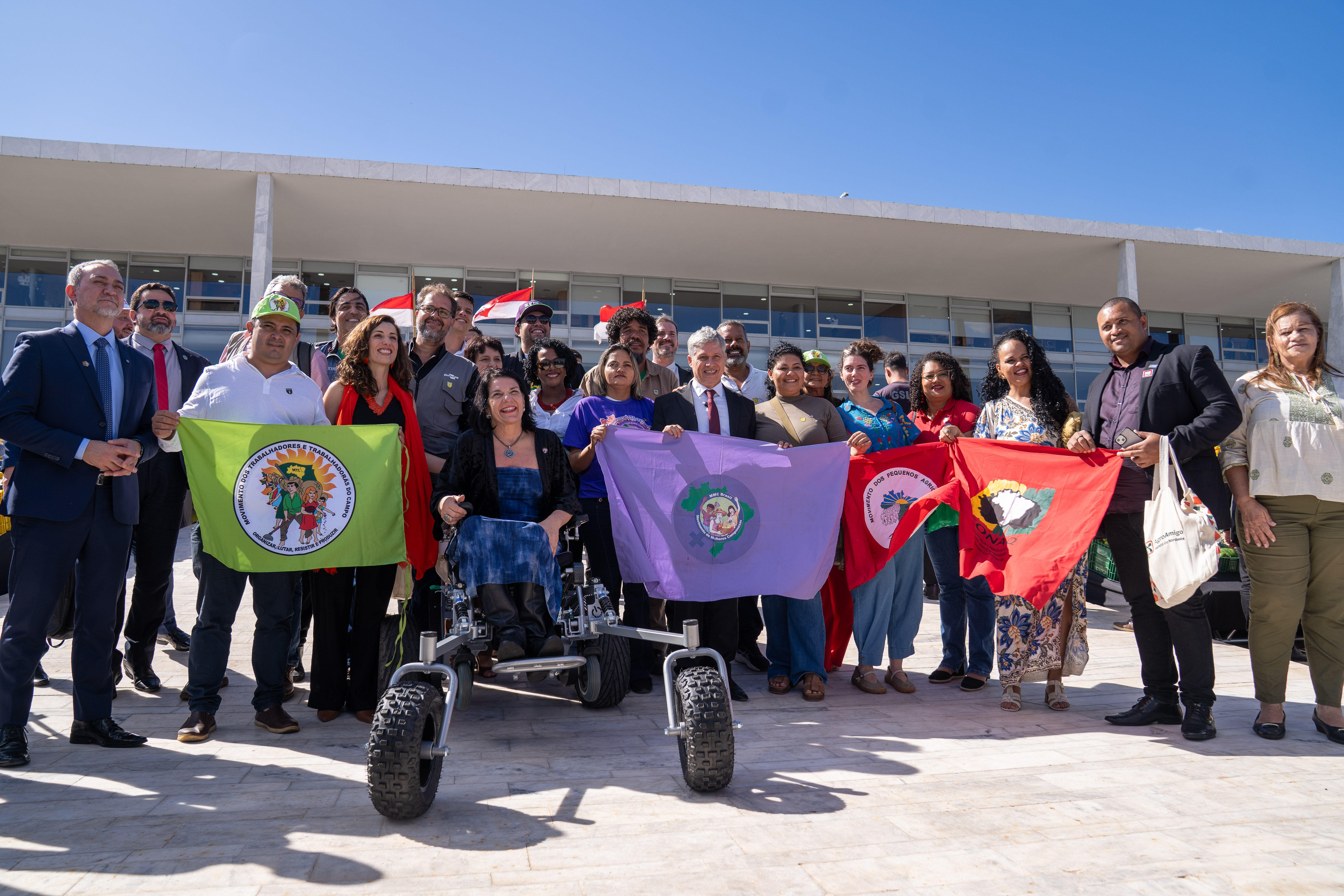 A ministra dos Direitos Humanos e da Cidadania, Macaé Evaristo, e a secretária nacional dos Direitos da Pessoa com Deficiência, Anna Paula Feminella, participaram do lançamento do Plano Safra da Agricultura Familiar para o biênio 2025-2026, nesta segunda-feira (30), no Palácio do Planalto, em Brasília (DF). O programa terá medidas que se conectam ao Plano Nacional dos Direitos da Pessoa com Deficiência – Novo Viver sem Limite, do Ministério dos Direitos Humanos e da Cidadania.
