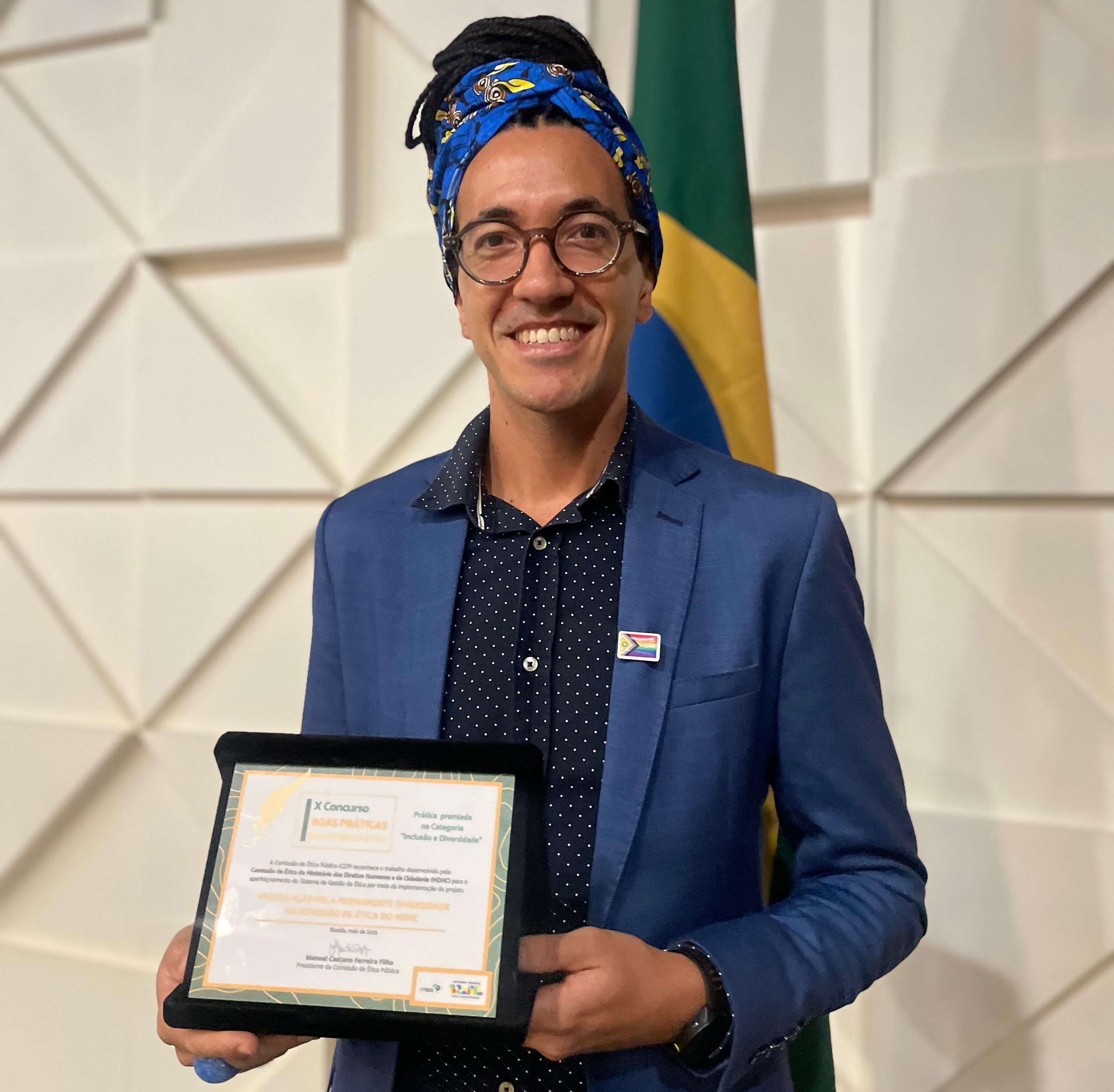 “Tenho a alegria de compor a Comissão de Ética do MDHC desde a sua criação e foi uma grande honra representar o Ministério na cerimônia de entrega do prêmio, principalmente por se tratar da categoria de Inclusão e Diversidade. Sempre acreditamos que a CE deve espelhar a diversidade da atuação do próprio MDHC, e esse prêmio apenas reforça esse compromisso”, afirmou, Renato César Cani, servidor da Secretaria Nacional de Promoção e Defesa dos Direitos das Pessoas LGBTQIA+, que representou o colegiado na cerimônia de premiação.A Comissão de Ética é responsável por orientar e aconselhar sobre a ética profissional do servidor no tratamento com as pessoas e com o patrimônio público. Para construir uma CE representativa e incentivar maior confiança entre os servidores, o MDHC incluiu um parágrafo na Portaria Nº 221/2023 – que institui o colegiado do órgão – prevendo critérios que promovam a diversidade na escolha de servidores para integrar sua instância consultiva.