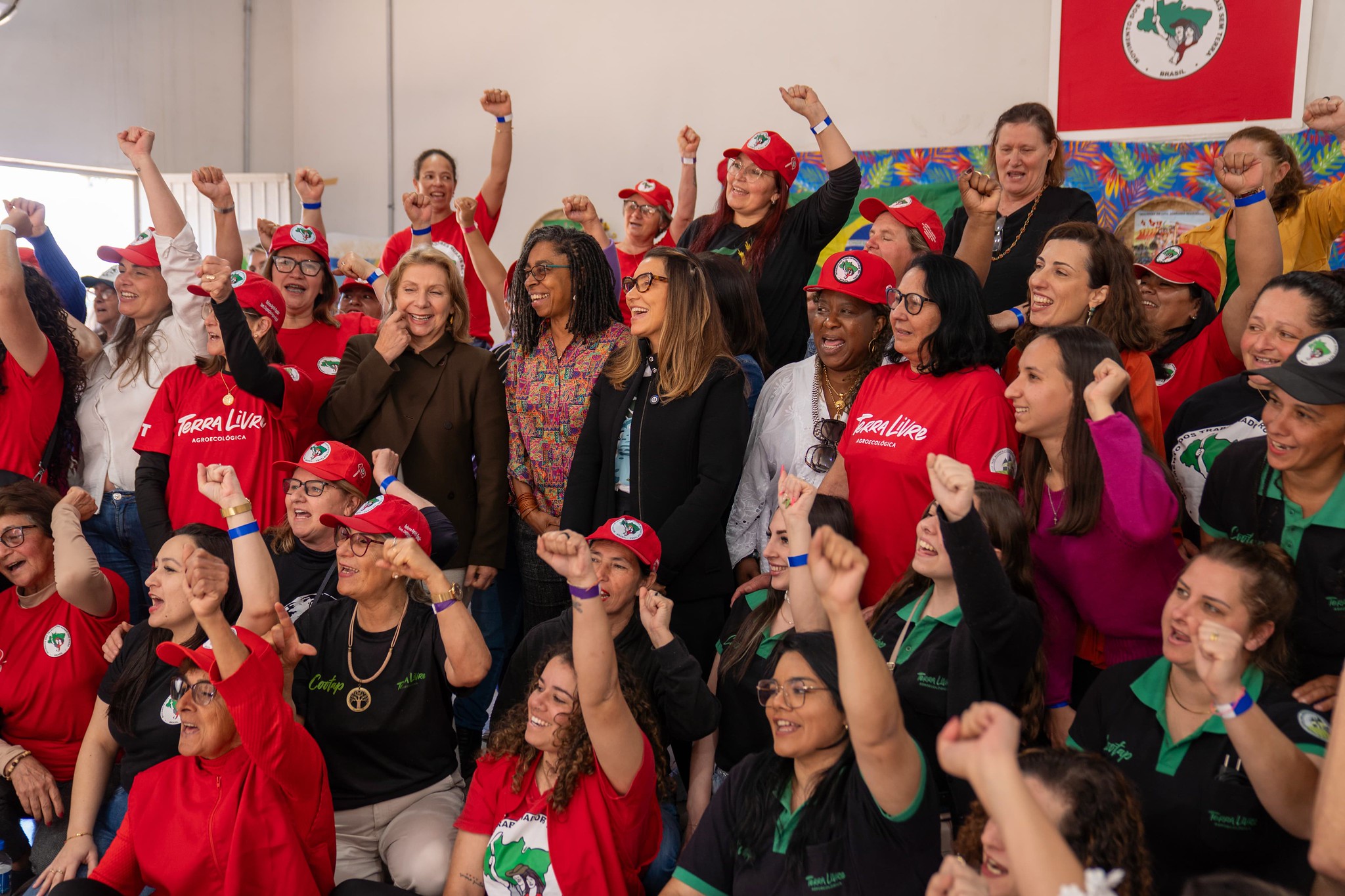 Durante a visita ao Rio Grande do Sul, a ministra Macaé esteve na cooperativa Terra Livre Agroecológica, em Eldorado do Sul, onde se reuniu com mulheres assentadas do MST. "No âmbito do MDHC, temos o Programa de Proteção aos Defensores de Direitos Humanos, Comunicadores e Ambientalistas (PPDDH), que acompanha de perto a luta das companheiras que fazem política todo dia na busca pela reforma agrária", destacou.A coordenadora do Setor de Produção do MST/RS, Roberta Coimbra, representante das assentadas, também apresentou sua visão sobre o bioma e os desafios locais. "Nosso Bioma Pampa é o menos estudado e mais esquecido nos últimos 10 anos. Mas aqui se constrói uma vida além da violência e da exploração, muito pelas mãos das mulheres que fazem o alimento e a vida acontecer todos os dias", ressaltou.