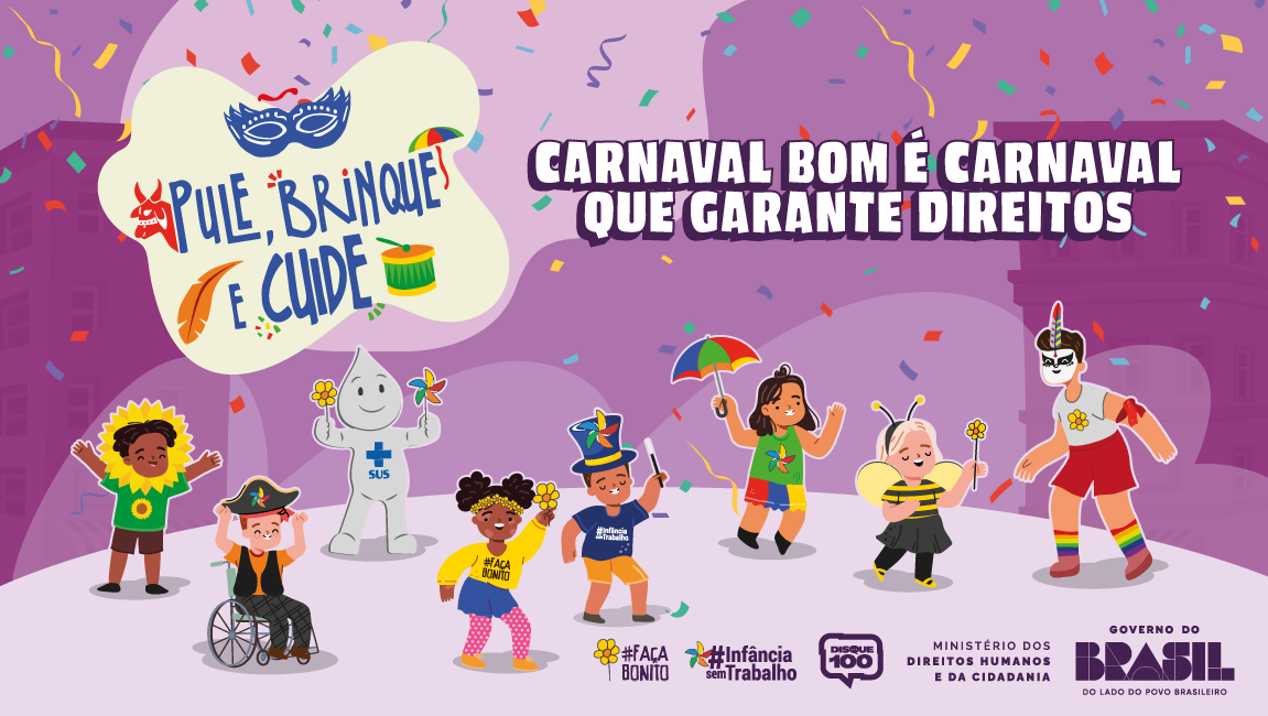 A ação para o Carnaval 2026 conta com o apoio da Comissão Intersetorial de Enfrentamento da Violência Sexual contra Crianças e Adolescentes (CIEVSCA), do Conselho Nacional dos Direitos da Criança e do Adolescente (Conanda), em articulação com organizações da sociedade civil e órgãos parceiros. Saiba mais!
