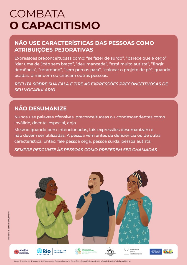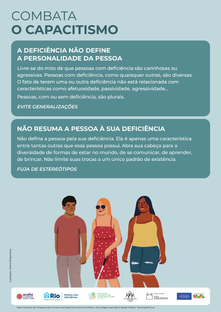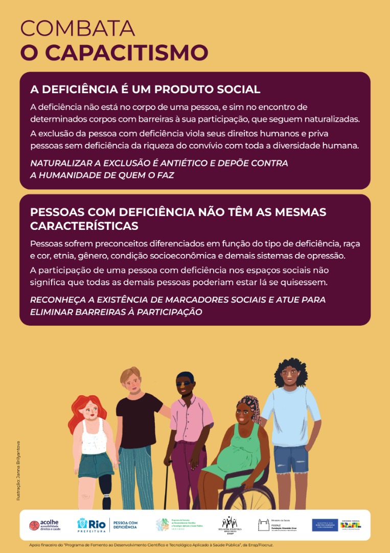 Em parceria com o Ministério da Saúde, o Ministério dos Direitos Humanos e da Cidadania, por meio da Secretaria Nacional dos Direitos da Pessoa com Deficiência (SNDPD/MDHC), lançou em 2023 a campanha “Combata o Capacitismo” pela Escola Nacional de Saúde Pública da Fundação Oswaldo Cruz (ENSP/Fiocruz).