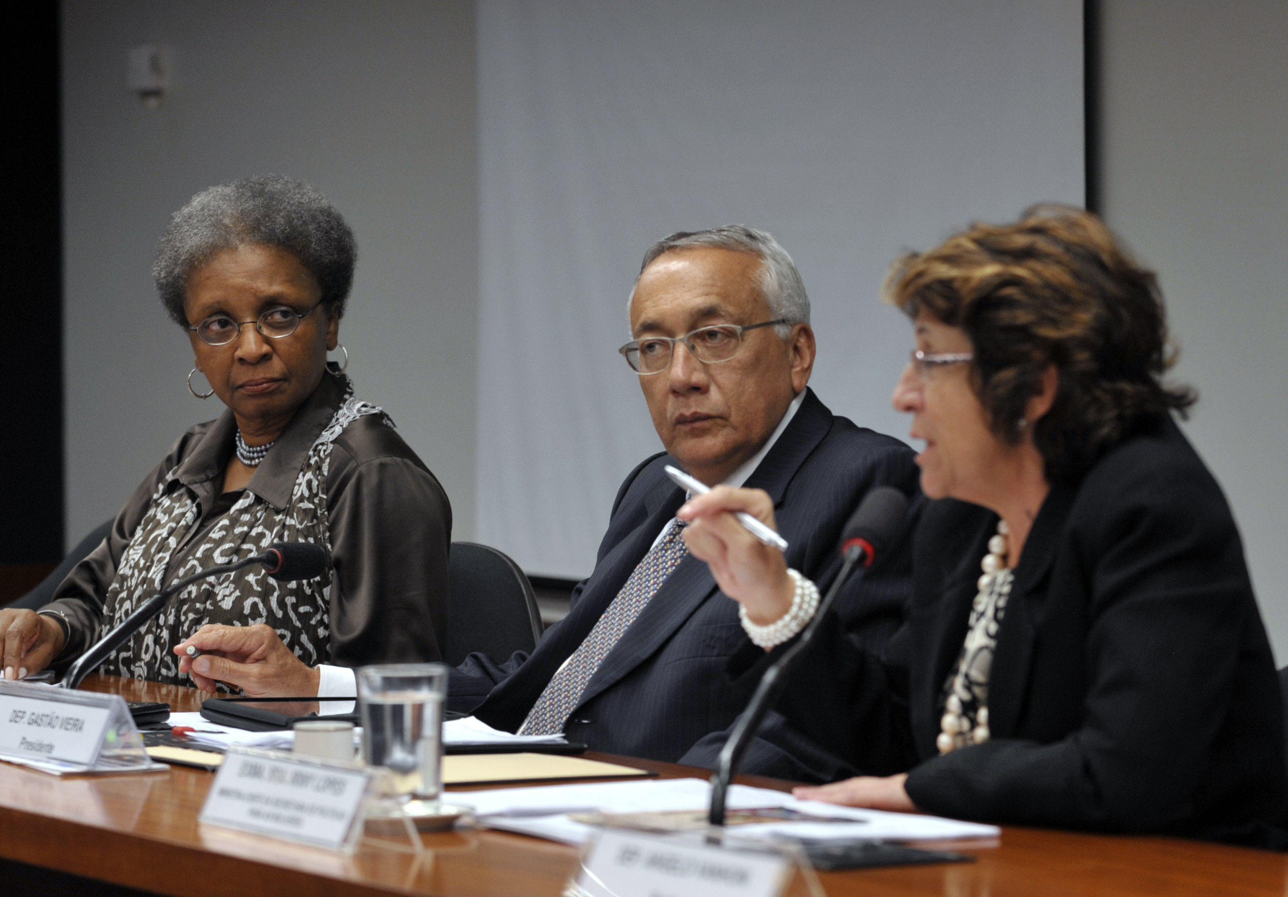 ministra Luiza Bairros (Seppir) , deputado Gastão Vieira - Presidente da comissão e a ministra Iriny Lopes (SPM), durante audiência pública na comissão especial sobre o Plano Nacional de Educação. Foto: Ricardo Araújo - ABr