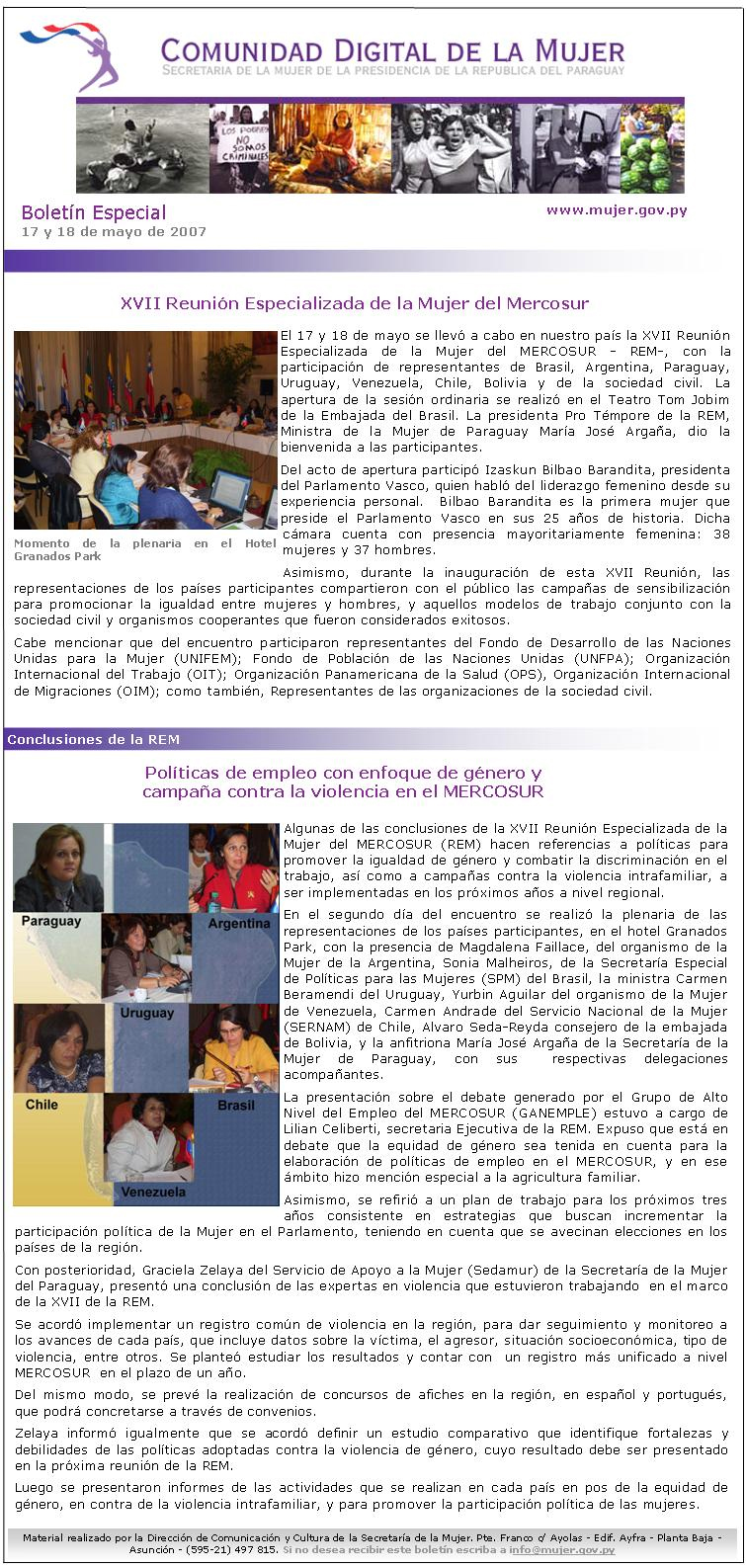 Boletim da reunião de mulheres do Mercosul - espanhol