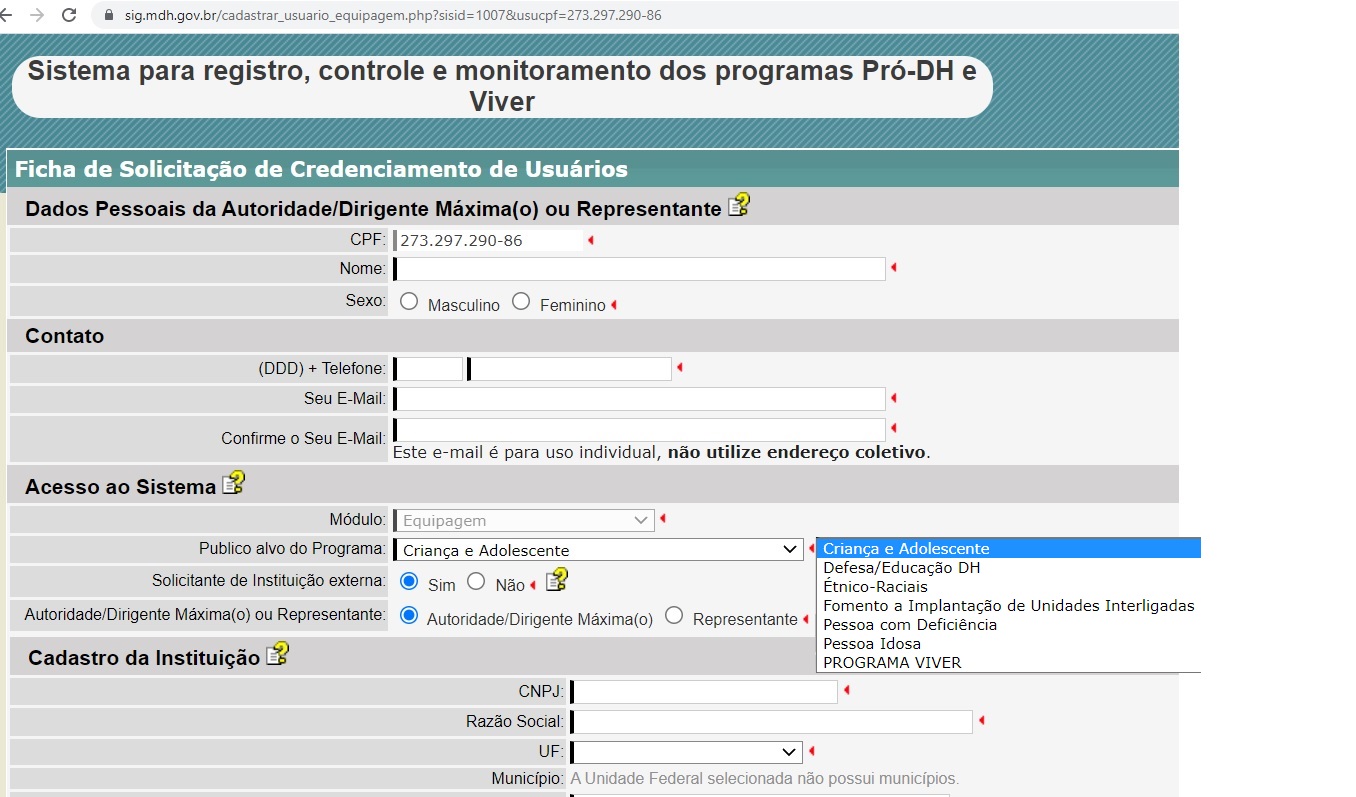 Sistema de Informação para a infância e Adolescência - Módulo Conselho Tutelar - SIPIACT