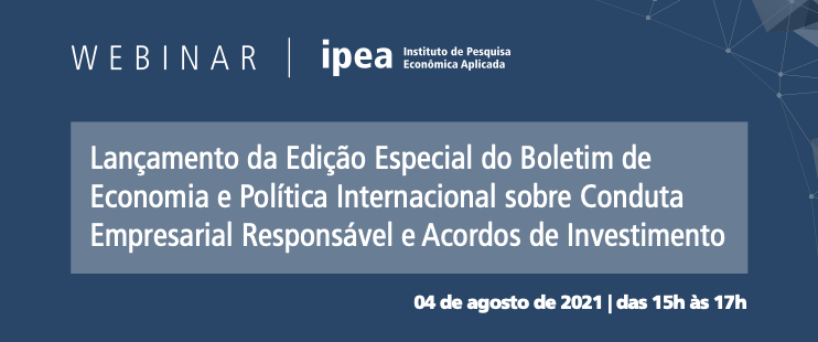 Lançamento da edição especial do Boletim de Economia e Política Internacional (BEPI) sobre conduta empresarial responsável e acordos de investimento.