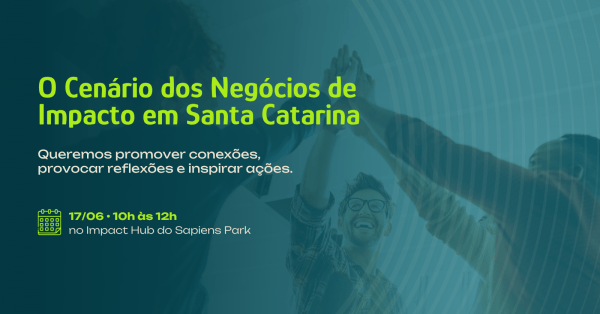"O Cenário dos Negócios de Impacto em Santa Catarina" pretende reunir agentes do ecossistema na capital do estado. O evento gratuito ocorrerá no Impact Hub Floripa dia 17 de junho. Para participar, é necessário inscrever-se no link indicado acima.