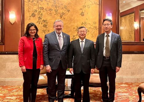 Nesta sexta-feira (14/4), em Pequim (China), o secretário-executivo do Ministério do Desenvolvimento, Indústria e Comércio Exterior (MDIC), Márcio Elias Rosa, e a secretária de Comércio Exterior do MDIC, Tatiana Prazeres, reuniram-se com vice-ministro do Comércio da China, Wang Shouwen.