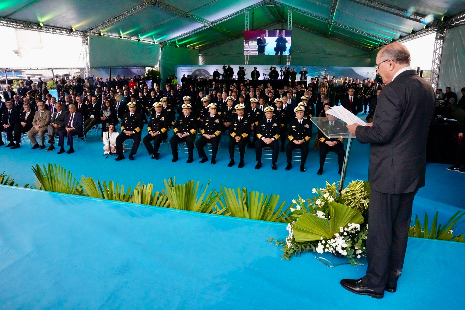 Investir em soberania é gerar riquezas para o povo brasileiro, diz Alckmin em lançamento de fragata