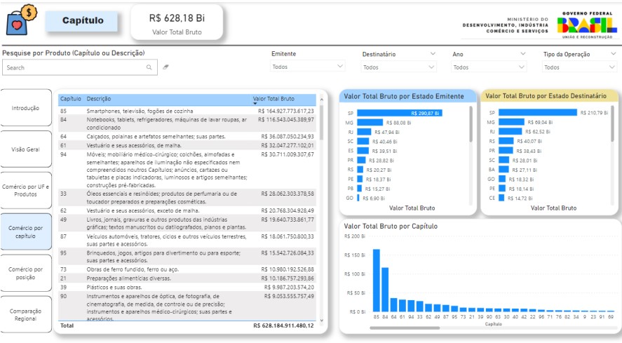 16. O que é possível visualizar na aba “Comércio por Capítulo” do dashboard.