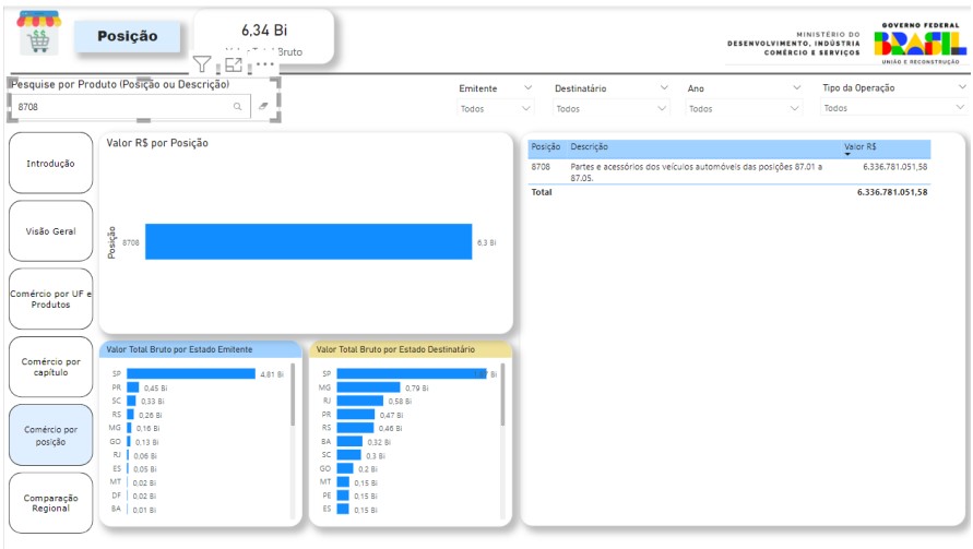 Também é possível fazer consultas por posições específicas como a de autopeças 8708.