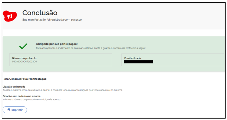 13) O sistema vai gerar um “Número de Protocolo” e enviar para acompanhamento no e-mail cadastrado