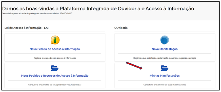14) Para consultar a tramitação da denúncia, selecionar a opção “Minhas Manifestações”, na etapa 3 deste passo a passo.