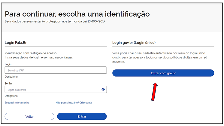 2) Entrar com seu login único gov.br (clique aqui para saber como cadastrar-se no portal gov.br)