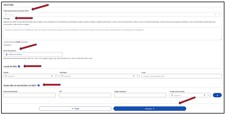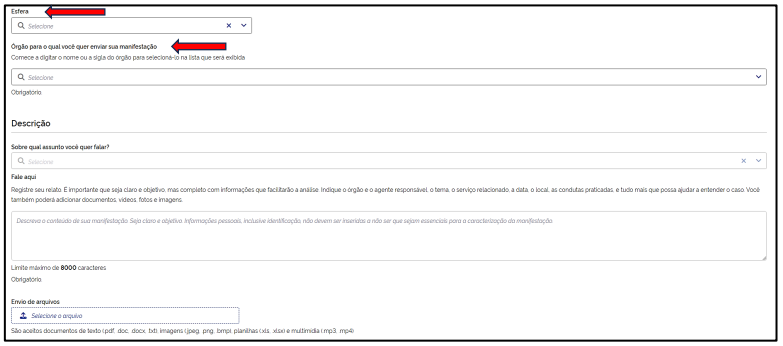8) Em “Fale Aqui”, registrar sua manifestação, buscando ser claro sobre o objetivo da demanda.