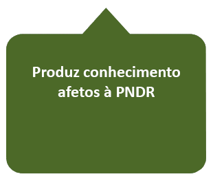 Além do núcleo central, de caráter estratégico, foi implementado 4 grupos temáticos destinado à produção de conhecimento e informações afetas à Política Nacional de Desenvolvimento Regional, que discutem a dinâmica territorial, o fortalecimento de capacidades institucionais e o monitoramento e avaliação da PNDR além da construção do painel de indicadores da PNDR.