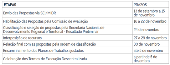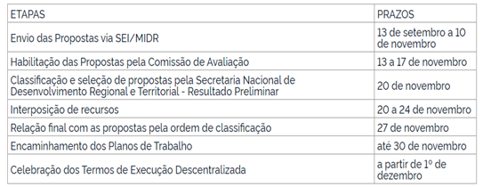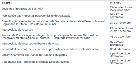 PRAZO PARA ENVIO DAS PROPOSTAS
