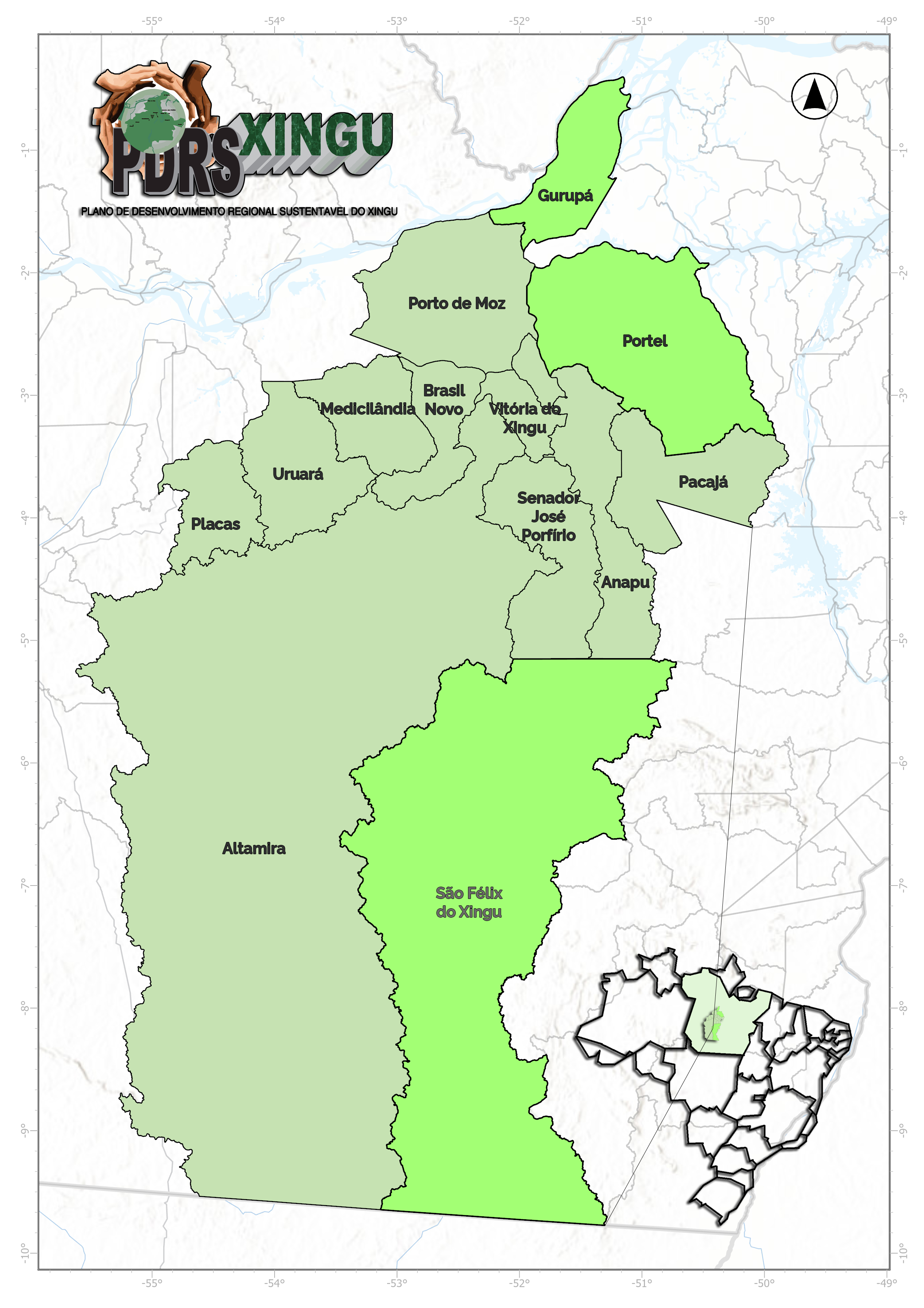 O Plano Sub-regional de Desenvolvimento Sustentável do Xingu (PDRSX), vinculado à Política Nacional de Desenvolvimento Regional (PNDR) e sob a coordenação do Ministério da Integração e do Desenvolvimento Regional (MIDR), foi instituído pelo Decreto Presidencial nº 7.340/2010 e atualizado pelo Decreto nº 10.729/2021. Sua finalidade é contribuir para a redução das desigualdades regionais e promover o desenvolvimento sustentável na área de influência da Usina Hidrelétrica de Belo Monte (UHEBM), abrangendo os municípios paraenses de Altamira, Anapu, Brasil Novo, Medicilândia, Pacajá, Placas, Porto de Moz, Senador José Porfírio, Uruará e Vitória do Xingu.