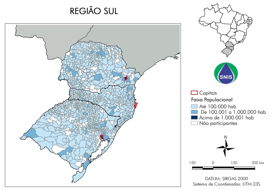 Em seu segundo ano, o SNIS–AP traz informações sobre o serviço de Drenagem e Manejo das Águas Pluviais Urbanas de 3.733 municípios, que representa 67,0% do total de municípios brasileiros, abrangendo 83,8% da população urbana. Nessa coleta contou-se com a participação de todas as 27 capitais de estado e do Distrito Federal. Os dados foram coletados por meio do módulo de Águas Pluviais, do Sistema Nacional de Informações sobre Saneamento Básico (SNIS-AP).