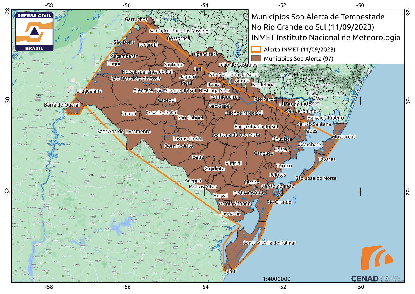 Defesa Civil Nacional emite novo alerta de chuvas intensas no Rio Grande do Sul