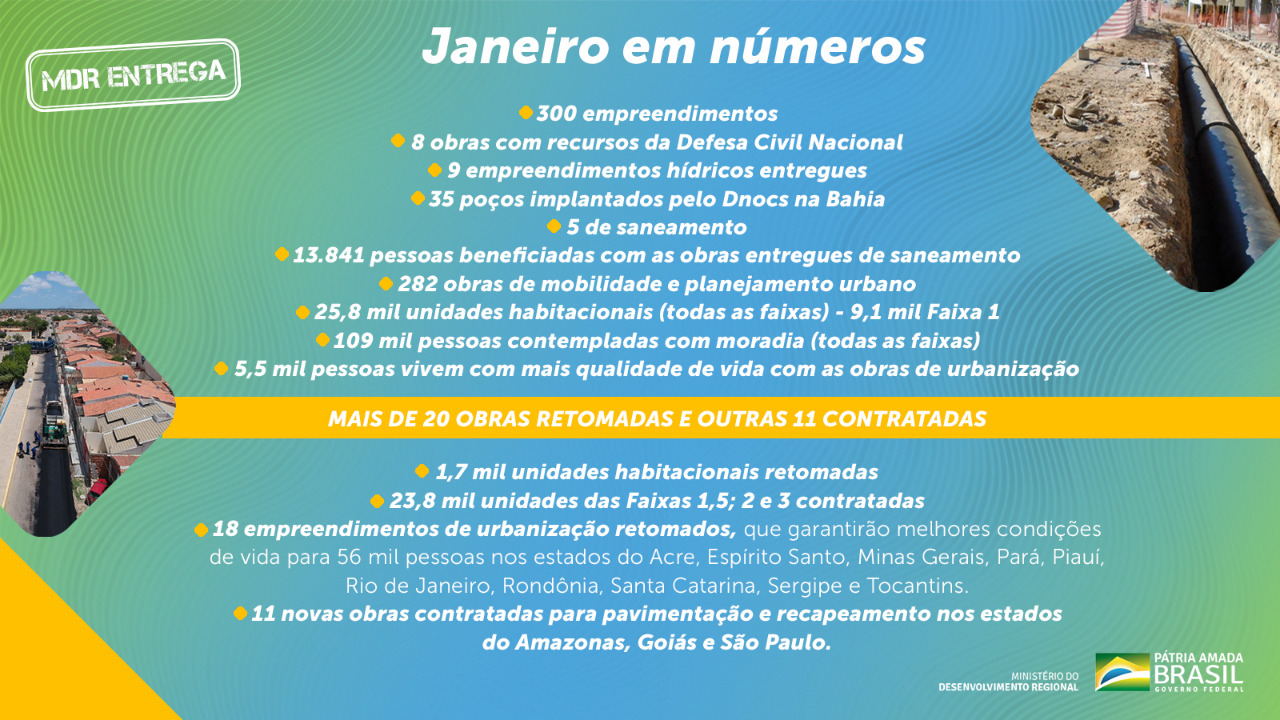 Em janeiro, MDR concluiu 346 obras e entregou 25,8 mil residências