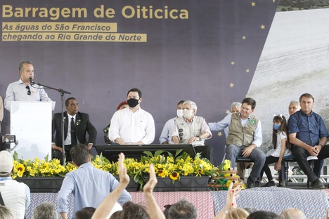 Em discurso, o ministro Rogério Marinho fez um breve histórico da Barragem de Oiticica e reforçou o compromisso do Governo Federal com a população brasileira. “Essa é a demonstração do compromisso de um governo que não tem retórica, mas que tem ação, efetividade e concretude. Em três anos e meio entregamos mais do que foi feito em 66 anos”, afirmou. O projeto inicial da barragem surgiu há quase 70 anos, no Governo Getúlio Vargas. Os trabalhos foram iniciados em 1952, mas paralisados logo em seguida.