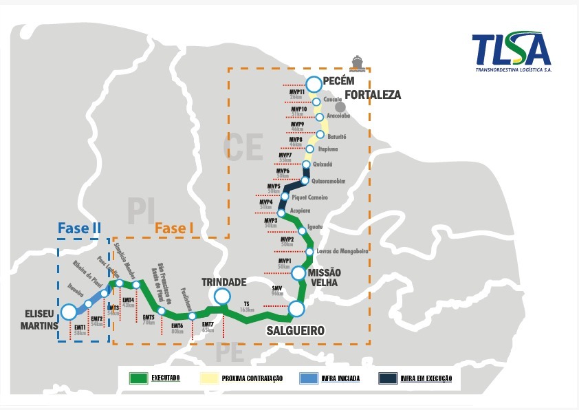 Mapa da concessão da ferrovia Transnordestina (Foto: Divulgação TLSA)