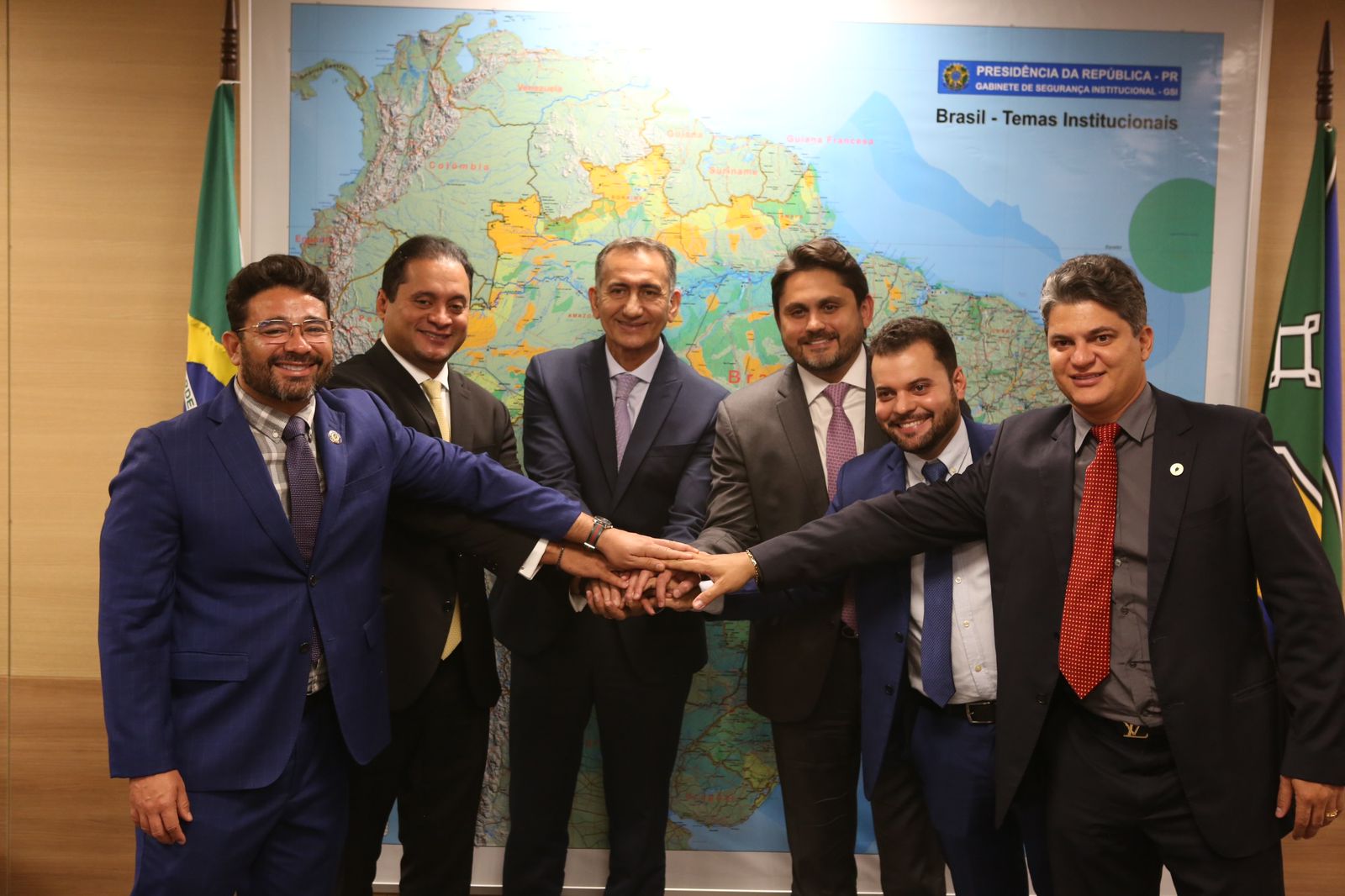 Waldez Góes recebeu o ministro das Comunicações, Juscelino Filho, o senador Weverton Rocha (PDT/MA) e os prefeitos de Trizidela do Vale (MA), Deibson Balé, e Peritoró (MA), Josué Júnior. Os dois municípios do Maranhão foram atingidos por chuvas intensas dos últimos meses (Fotos: Dênio Simões e Márcio Pinheiro/MIDR)
